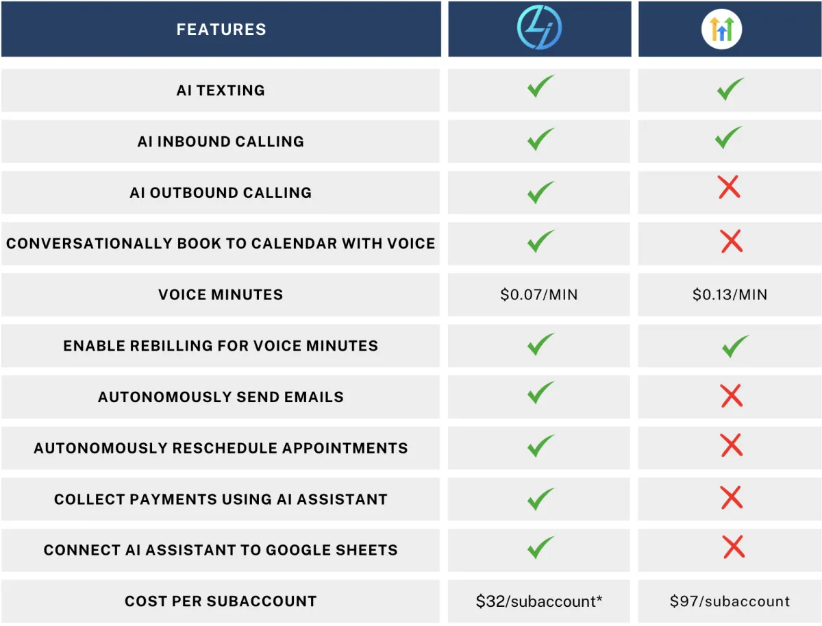 Our software works with all GHL plans, but you must be on either the $297 plan or the $497 plan to be able to use our Agency Workspace which allows for White Labeling and rebilling. If you are on the $97 GHL Plan, you can still use our software by directly connecting to your sub-account and have full access to unlimited AI Assistants!